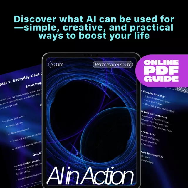 Unlock the potential of artificial intelligence with AI in Action — your step-by-step digital guide to understanding what can AI be used for in real, practical ways. Whether you’re an entrepreneur, creator, or curious learner, this easy-to-follow eBook reveals how AI can simplify daily routines, supercharge productivity, and ignite creativity. From automating tasks to brainstorming new ideas, you’ll learn how to harness the smartest tools available today.